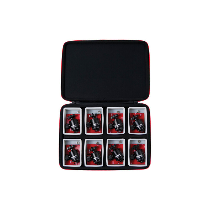 This MC 8-Light Accessory Pack from Aputure is designed for MC lights and includes eight ball head mounts and eight diffusers. The accessories come in a zippered case that features EVA foam and eight compartments for the accessories.