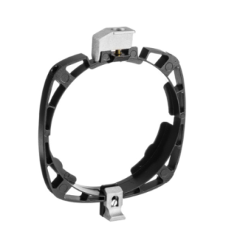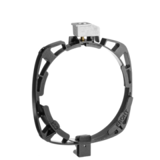 The ARRI accessory holder for ARRILITE 750 Plus is a replacement for the one supplied with the light. The detachable and fully rotatable accessory holder accommodates scrims and barndoors, and includes fittings for directly mounting the Chimera Video Pro Plus S without additional speedring.