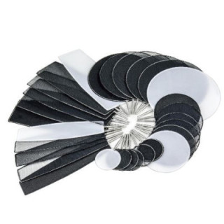 A dot or finger made by thin spring steel can be attached to the flex arm with a mounting pin for precise positioning. This Dot and Finger Kit features a variety of shapes and materials that allow you to shape, soften, and control the light. Great for highlights or negative fill on small curved shiny surfaces.