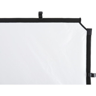 A simple tool for softening light when working on location, this Skylite Rapid Fabric Diffuser from Manfrotto is designed for use with the medium, 3.6 x 6.6' Skylite Rapid Frames. This neutral white diffusion cuts 0.75 stop of light and quick attaches and detaches from the frame using a clip-style connection.