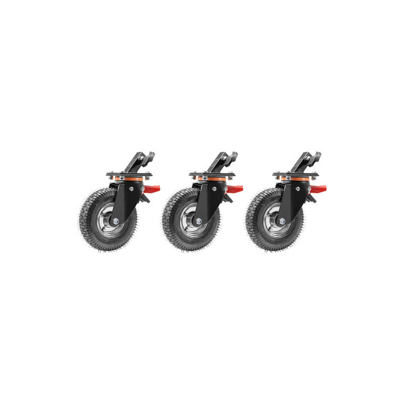 The set of three Montreal Big Wheel casters from SHAPE adds mobility to light stands with 1" wide legs. These wheels feature 8" diameter inflatable pneumatic tires for smooth movement on rugged terrain.