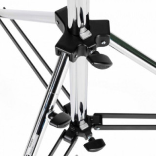 The Manfrotto Steel Junior Stand is a heavy-duty stand for location or studio. It comes with a double-braced leg base for extra stability and safety. This tripod stand also provides one leveling leg for stability on uneven terrain.