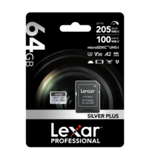 The Lexar Professional SILVER PLUS microSDXC UHS-I card offers a maximum read speed of 205MB/s and a maximum write speed of 150MB/s so you can capture better photos and videos and speed up your workflow.