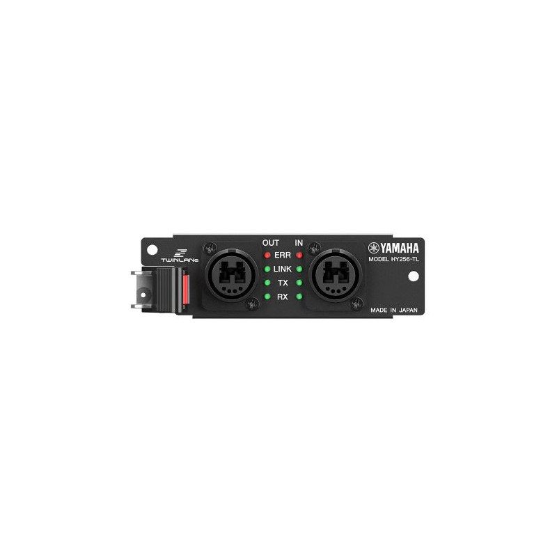 The HY256-TL is a digital I/O card that supports the TWINLANe audio network protocol. Up to 256 simultaneous input and output channels at 96 kHz/32-bit are available, and multimode fibre optic connections ensure reliable operation. Data can be reliably transferred between cards over distances of up to 300 metres.