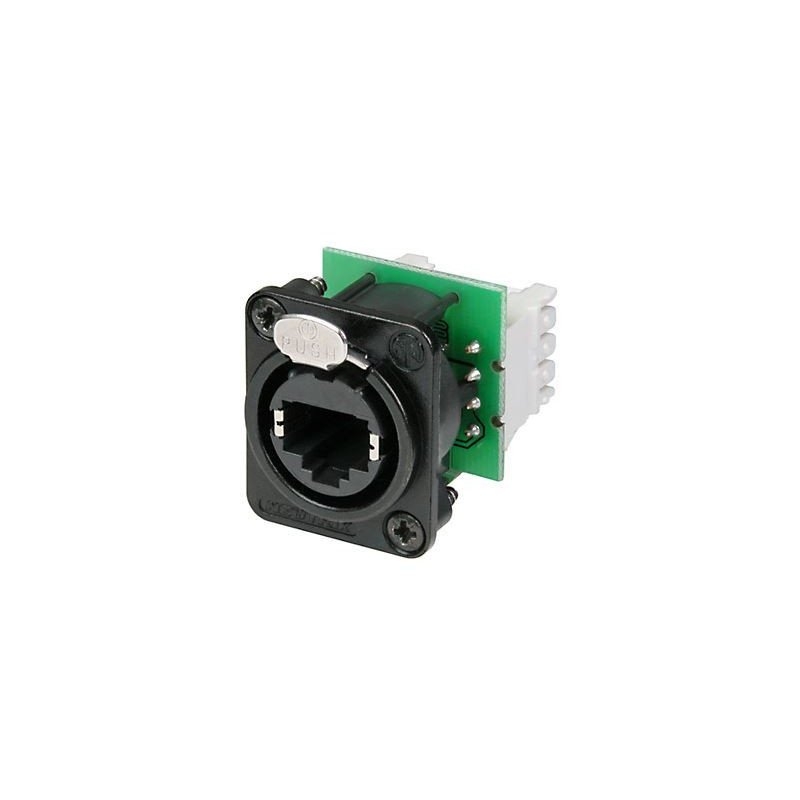 The etherCON series is a robust, lockable RJ45 connector system, optimised for professional audio, video and lighting network applications. The chassis connectors are designed to fit standard entertainment industry panels.