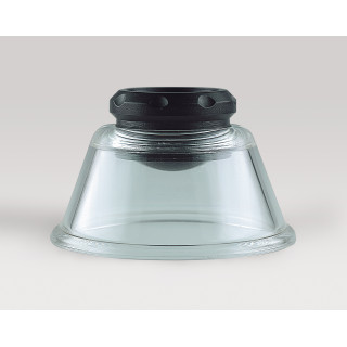 Versatile magnifier with colour-corrected aspherical lens and sight correction. Transparent base.