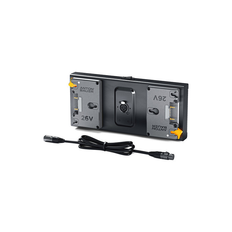 Use this 26V Dual Mounting Plate from Anton Bauer to power the Gemini 1x1 or Gemini 2x1 with 100% maximum via the XLR3 connector using two 26V Gold Mount Plus batteries.