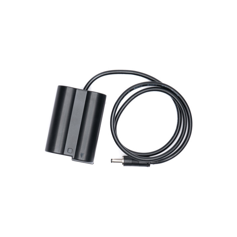 Extend the battery life of your Nikon DSLR with a FOCUS monitor using this SmallHD FOCUS to Nikon EN-EL15 dummy battery adapter. The adapter plugs into the DC barrel output of the FOCUS monitor and the EN-EL15 dummy battery plugs into your Nikon's battery compartment. Your camera can then benefit from the higher capacity batteries installed on the FOCUS monitor. - Connector 1: DC Barrel - Connector 2: Nikon EN-EL15 dummy battery
