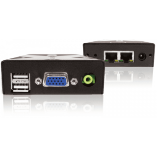 The Adder X200AS/R is a X200 user station for CATx switches that includes VGA, USB, audio and DeSkew with built-in 2-port KVM switch.