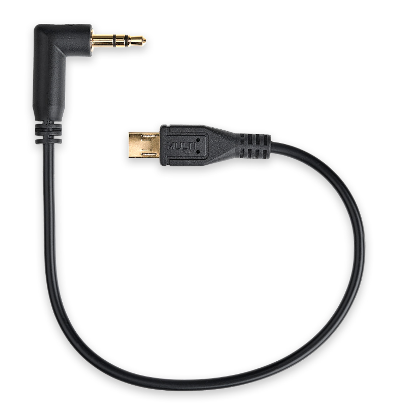 Feed timecode into your Sony FX3 or FX30 camera from your Tentacle Sync SYNC E, TRACK E, or original timecode unit using this 3.5mm TRS to Multi Interface Timecode Cable. Insert the right-angle 3.5mm TRS connector into your compatible timecode unit. Insert the Multi Interface connector into your Sony FX 3 or FX30 camera for a direct timecode connection without using BNC adapters. In total the cable measures 7.9" long for efficient cable runs.