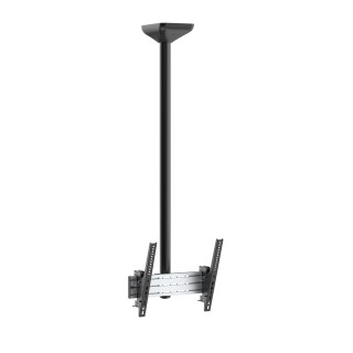 The KIMEX 031-4110K2 ceiling mount is designed to accommodate a 43 to 75 inch TV screen meeting VESA standards (100x100mm min, 400x400mm max), up to 50 kg.