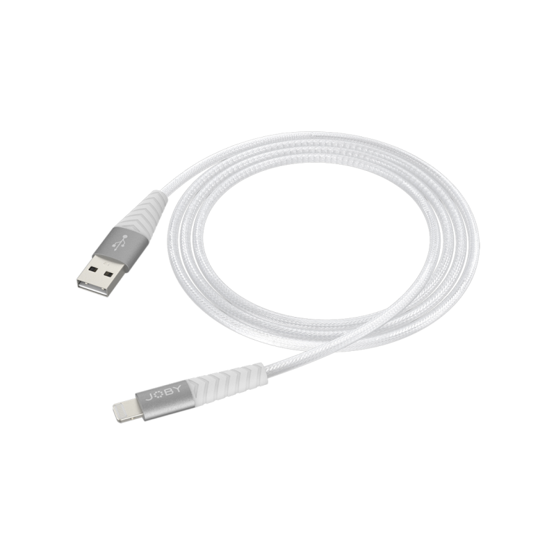 Built to last, this JOBY Charge & Sync Lightning Cable features a Lightning connector on one end and a USB 2.0 connector on the other, with durable aluminum casings and flexible strain-relief material.