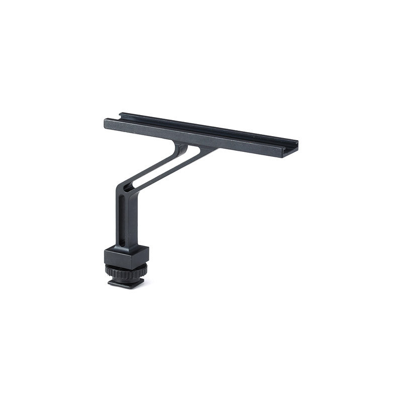 hoe Bridge Short: A 4" machined aluminum shoe bridge that sits 4" over the camera and can offset accessories to one side. The cold shoe is made of industrial Delrin.