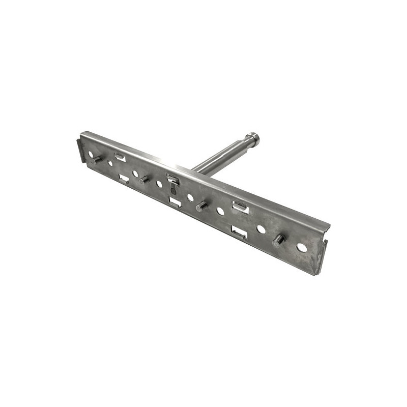 The Tube Cross Plate for AX1 and Titan from Astera is an accessory that can hold four Wingplates parallel to it and has a 5/8" baby pin welded on its underside for 5/8" receivers. To support the tubes, separately-purchased AX1-WP wingplates and AX-1H metal holders are required.