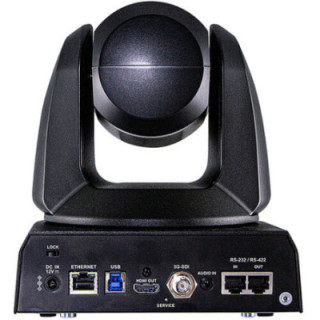 This black 3G-SDI/HDMI/USB 3.0/IP PTZ Camera from Marshall Electronics boasts a 20x optical zoom and is equipped with 3G-SDI, HDMI, USB 3.0, and IP simultaneous outputs with resolutions up to 1920 x 1080p at 60 fps.
