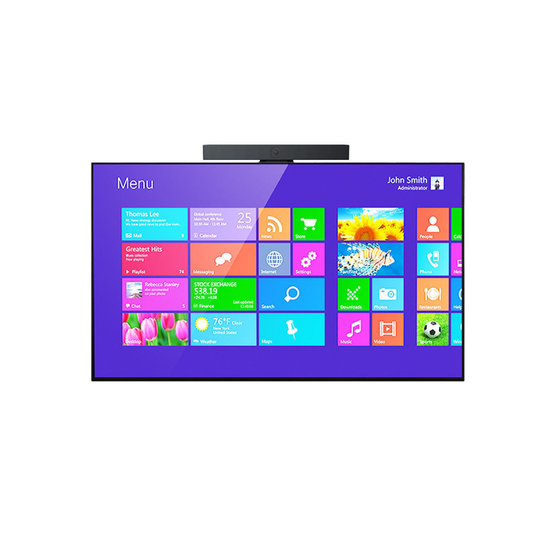 Wall-mounted videoconferencing consisting of a KIMEX 163-4335 screen, a 180-0001 video conference camera, and a 012-1246 wall mount, ideal for meeting rooms of 1 to 4 people.