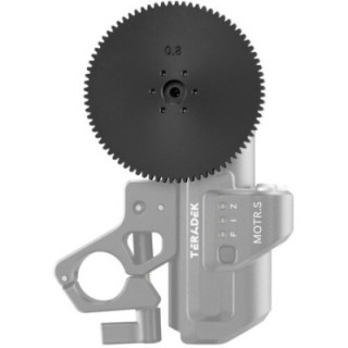 This 0.8 MOD Motor Gear from Teradek is designed for use with the RT series MOTR.S lens control motor. The wide surface of this gear provides a larger interface for lens barrels that move through an extended focus or zoom range.