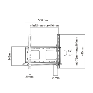 Il supporto da parete inclinabile KIMEX 012-1344 è progettato per supportare uno schermo TV LCD LED da 32 a 55 pollici conforme agli standard VESA tra 75 x 75 mm e 400 x 400 mm, fino a 80 kg.