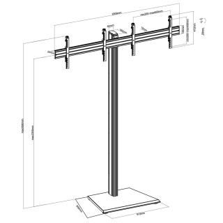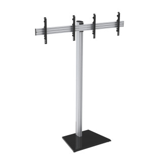 Il supporto a piantana KIMEX 031-1221K1 è progettato per ospitare due schermi TV da 50" a 55" conformi agli standard VESA (200x200 min, 600x400mm max), fino a 50 kg.