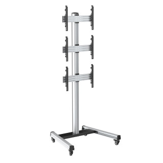 Il supporto su ruote KIMEX 031-1300K2 è progettato per ospitare tre schermi TV da 40 a 65" conformi agli standard VESA (200x200 min, 600x400 max), fino a 50 kg.