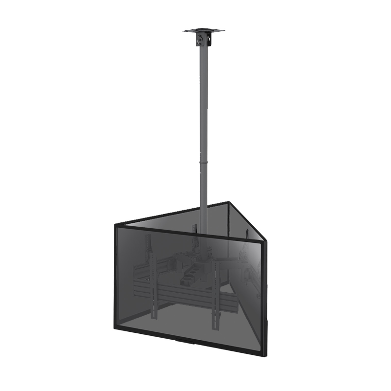 Il supporto da soffitto KIMEX 014-6013 è progettato per ospitare tre schermi o monitor standard VESA da 50" a 75" (100x100mm min, 600x400mm max) fino a 45kg.