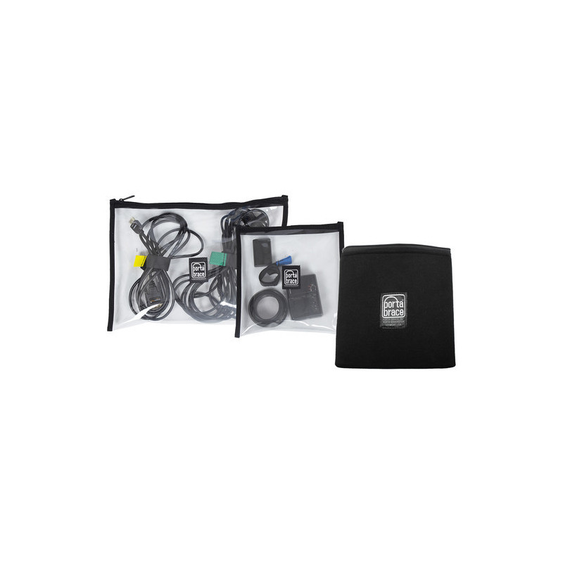 Il Porta Brace POUCH-CLEARSET include due tasche trasparenti con fodere interne morbide e cerniere lampo YKK di alta qualità. Le tasche misurano rispettivamente 26,7 x 35,6 cm e 20,3 x 27,9 cm e si aprono ampiamente. Queste tasche non solo offrono un accesso rapido a tutti i tipi di accessori per fotocamere, ma poiché sono realizzate in vinile trasparente, è possibile vedere il contenuto senza doverle aprire per verificarlo. Questo set include anche una tasca accessori CS-B9 in omaggio.