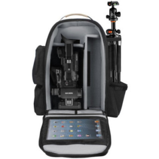 Lo zaino BK-PXWZ280 è progettato per contenere una videocamera HD compatta e i suoi accessori. La custodia è realizzata in nylon Cordura 1000 denari resistente all'abrasione. Il telaio è costruito con una schiuma leggera di un pollice di spessore per una protezione aggiuntiva della videocamera e degli altri contenuti. L'interno è foderato con un morbido materiale Veltex che previene graffi all'attrezzatura e consente anche ai divisori interni imbottiti di essere posizionati in qualsiasi posizione all'interno.