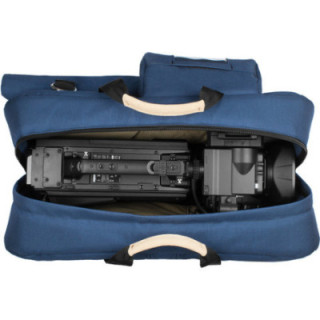 La custodia da trasporto imbottita durevole Porta Brace blu con protezione rinforzata del mirino è progettata per trasportare e proteggere una telecamera professionale o broadcast e i suoi accessori. È una custodia leggera con un sistema di imbottitura interna per ammortizzare la telecamera. La custodia è realizzata in nylon Cordura 1000D resistente all'acqua con tessuto antiscivolo sul fondo.