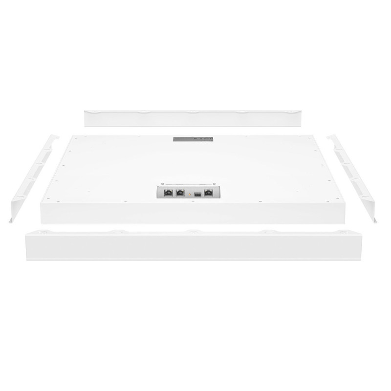 The SL CM EB 625 extension brackets (4 pcs) shall be used when the TeamConnect Ceiling Mic 2 is installed flush-mounted in a 2.05 feet ceiling grid. It extends the housing size from 590mm (1.94ft) to 617mm (2.02ft)