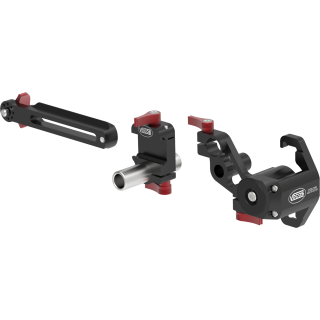 Quando il mirino opzionale Sony viene utilizzato sullo schermo LCD del Sony FX6, questo supporto offre una stabilità aggiuntiva e una frizione regolabile in modo fluido necessaria per supportare il peso aggiuntivo del mirino. Di conseguenza, lo schermo non si muoverà più spontaneamente, il che migliora l'ergonomia. Questo kit aggiunge una regolazione di lunghezza - un supporto robusto (110 mm di lunghezza) da 8T a 15 mm basato su una guida NATO. Si prega di notare che in alcune situazioni, la regolazione della lunghezza è limitata dalla lunghezza del cavo dello schermo. Il kit è composto dai seguenti elementi:|