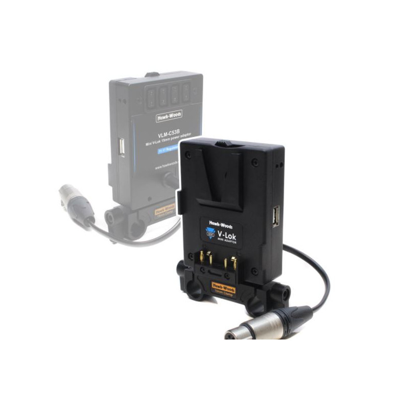 Il VLM-C53B di Hawk-Woods offre all'utente un'eccellente soluzione per alimentare la videocamera Canon e altri accessori con batterie V-Lok. Questo adattatore è completamente dotato di 4 Power-Con (D-Tap) e di un'uscita USB.