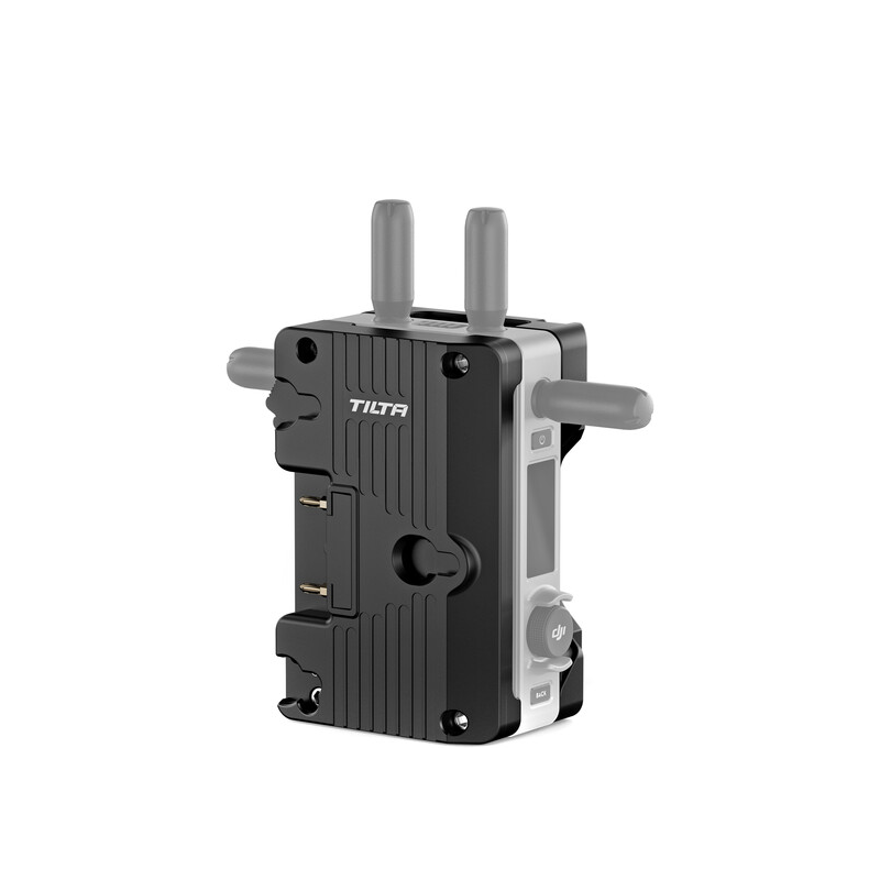 Power your DJI Video Transmitter along with your camera with this Gold mount Power Supply Module from Tilta. The power module consists of a battery plate and a camera-side plate that mount on either side of the DJI Video Transmitter.