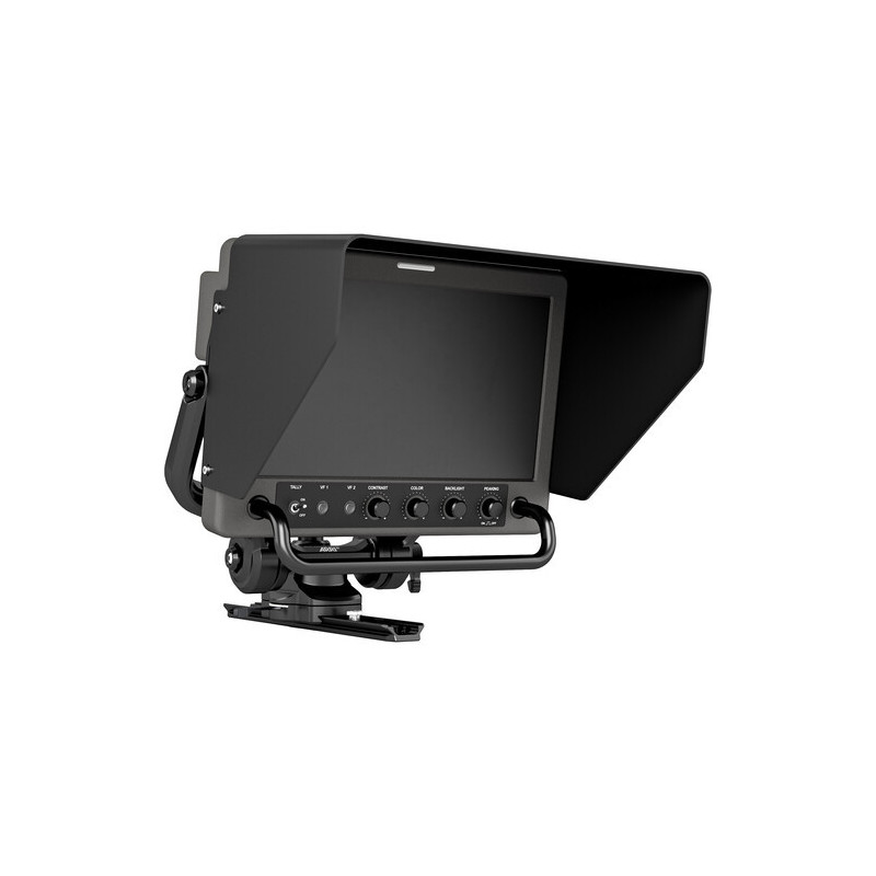 Il display LCD da 10 pollici si collega direttamente all'interfaccia del mirino della telecamera o può essere collegato in serie con il CCP-1. Dispone di controlli per contrasto, colore, retroilluminazione e peaking, un interruttore fisico On/Off per il tally frontale e due pulsanti utente della telecamera. Il supporto Monitor Yoke Support MYS-1 è progettato per sostenere il monitor del mirino ARRI Viewfinder Monitor Multicam VMM-1.