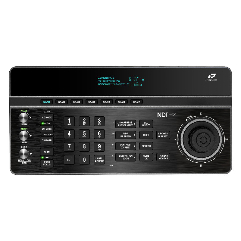 Telycam TLC-50TC è una tastiera di controllo joystick PTZ completa e facile da utilizzare, applicata per il controllo remoto seriale o di rete della telecamera PTZ, progettata per semplificare e migliorare il lavoro e l'efficienza degli operatori di produzione video.