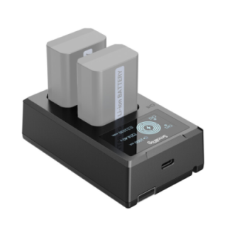 Il caricabatterie per fotocamera SmallRig NP-FW50 dispone di due alloggiamenti per la ricarica simultanea. Compatibile con le batterie delle fotocamere Sony Alpha, NEX e Cyber-shot, può essere utilizzato per caricare la batteria per fotocamera SmallRig NP-FW50 così come la batteria originale. Il caricabatterie è dotato di un cavo di ricarica USB-A integrato e di un'interfaccia di ingresso USB-C per l'utilizzo con diverse fonti di alimentazione. Un display LCD fornisce letture in tempo reale della corrente, della tensione, della capacità del caricabatterie e dell'avanzamento della ricarica della batteria.