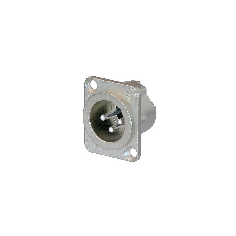 Connettore maschio a 3 poli, contatti a saldare, corpo nichelato, contatti argentati.
