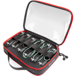Il kit cavi per telecamera SHAPE BNC 1st AC include 12 cavi BNC 3G-SDI ultra sottili da 0.1" (2,5mm) con connettori ad angolo retto in una custodia compatta a doppio lato. Ci sono tre set di quattro cavi, ogni set di lunghezza diversa e composto da quattro cavi di colore diverso.