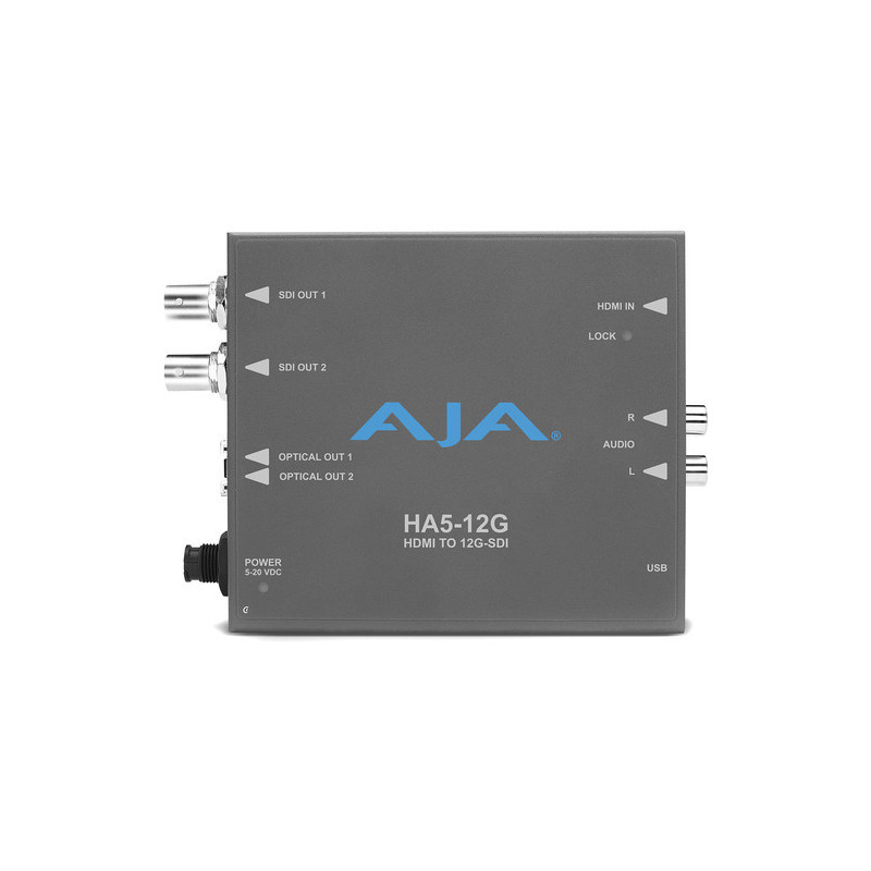 Il mini-convertitore AJA HA5-12G HDMI 2.0 a 12G-SDI converte un singolo ingresso video HDMI 2.0 in due uscite 12G-SDI, minimizzando i passaggi di cavi per la distribuzione HDMI. Questo convertitore compatto dispone di un ingresso HDMI 2.0 e due uscite 12G-SDI a collegamento singolo. Supporta risoluzioni video fino a DCI 4K (4096 x 2160) e UHD 4K (3840 x 2160). L'HA5-12G supporta il contenuto ad alta gamma dinamica (HDR) con analisi dei dati InfoFrame in ingresso tramite HDMI.