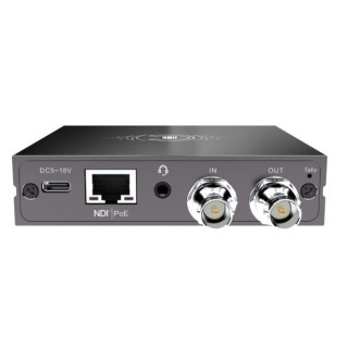 Bi-Directional NDI Converter with loopout, voice intercom, Tally, POE, PTZ control, wide range power supply; Input: 12G-SDI. Resolution up to 4Kp60. Media transmission protocol: NDI