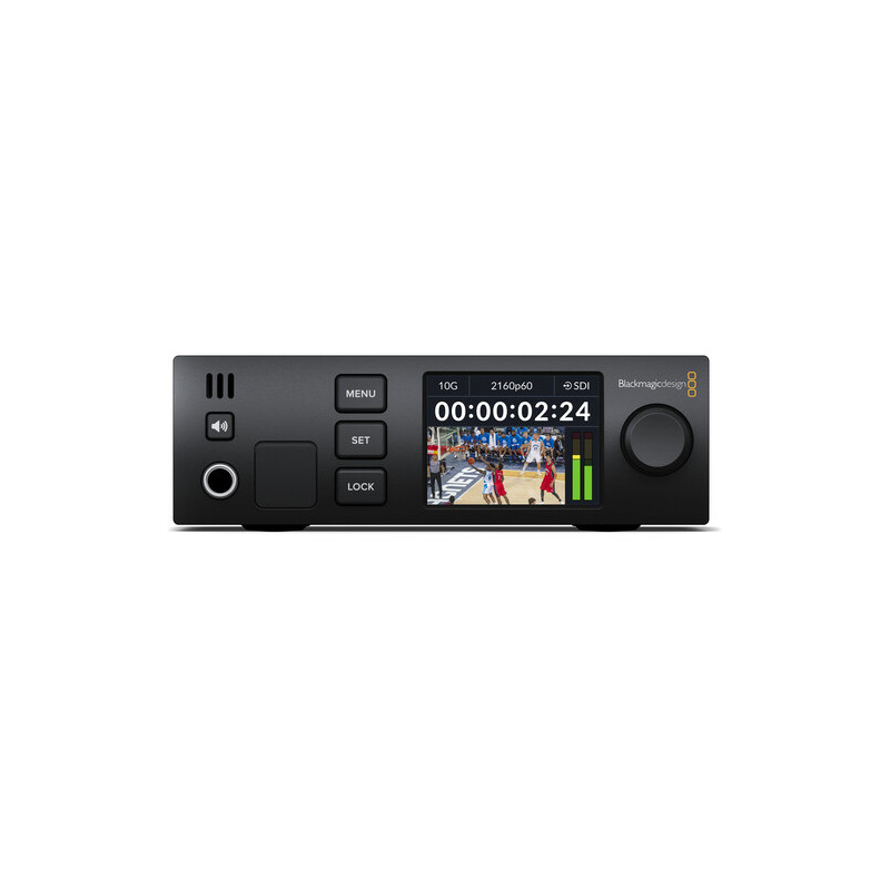 Dotato di una porta Ethernet 10G per il supporto video 2110 IP e di ingresso 12G-SDI con uscita loop e connettività HDMI 2.0 che gestisce risoluzioni fino a UHD 4K, questo versatile dispositivo rack è dotato di controlli frontali, altoparlante di monitoraggio audio integrato e jack per cuffie.
