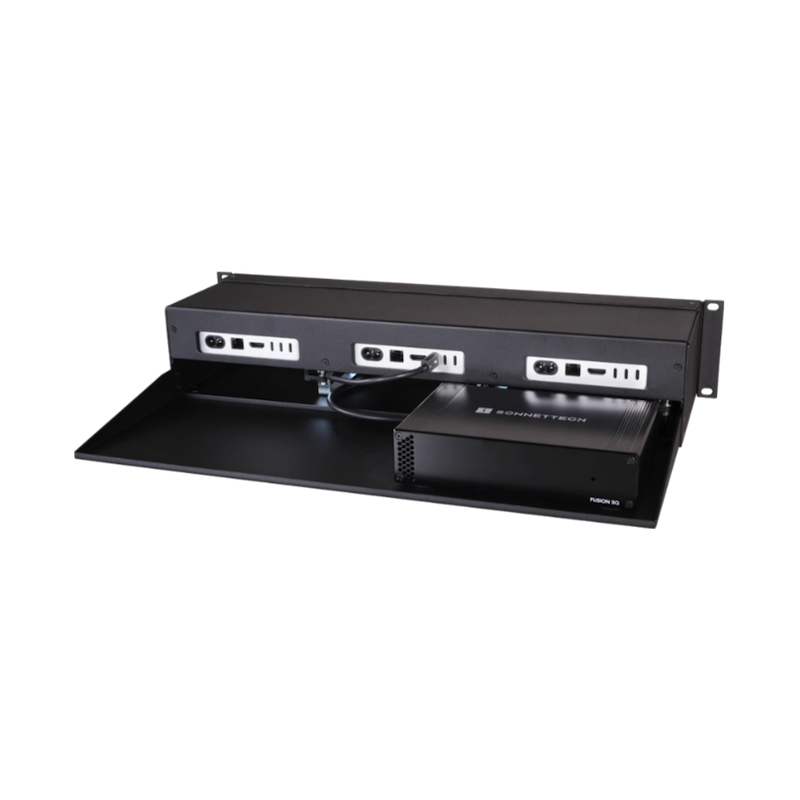 Il vassoio accessori è il complemento perfetto al vostro telaio RackMac mini (2024+), offrendo una comoda organizzazione e connettività per le periferiche aggiuntive dietro il computer; periferiche vendute separatamente.