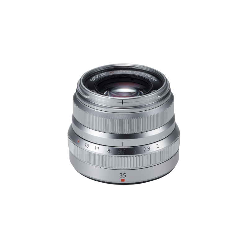 Achieving the perfect balance between size and performance, the silver XF 35mm f/2 R WR is an elegant normal-length prime featuring a compact profile and apt image quality.