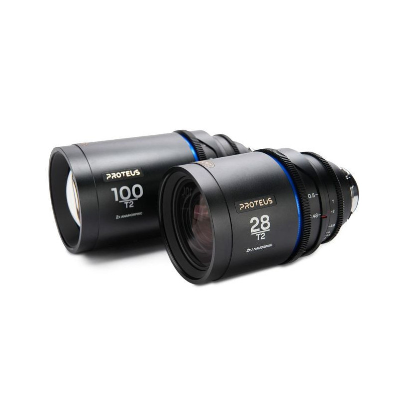 The Laowa Proteus 2x Anamorphic 28 & 100mm T2 Lens Bundle comprises two cinema lenses for capturing high-definition video with 2x anamorphic squeeze on cameras with S35+ sensors, such as the ALEXA 35 and RED V-RAPTOR.