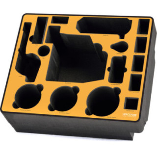 Ogni nicchia in schiuma è tagliata con precisione per adattarsi alla videocamera, a uno dei suoi accessori o a oggetti vari. Sono previsti spazi per il corpo macchina, quattro batterie, un caricabatterie, un microfono, un set audio wireless, cavi e accessori aggiuntivi.