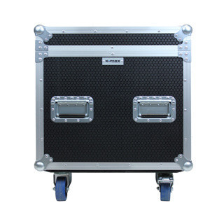 Organizza e proteggi la tua attrezzatura con il flight case a baule di Kimex, dotato di vano portaoggetti integrato.