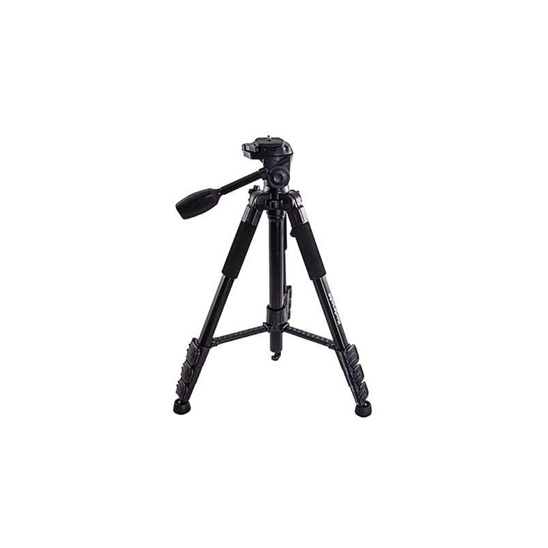 Questo treppiede a 2 stadi ha chiusure a scatto per le gambe, piedini girevoli in gomma e un'altezza regolabile da 47 a 147 cm.