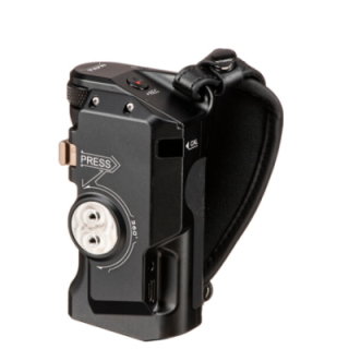 L'impugnatura accetta una batteria Sony F570, venduta separatamente. Un cavo USB incluso collega l'impugnatura al tuo motore Nucleus Nano per alimentarlo dalla batteria F570 e consentire il controllo della messa a fuoco tramite manopola.