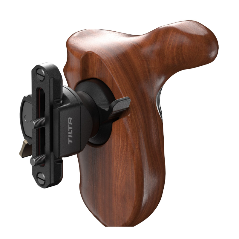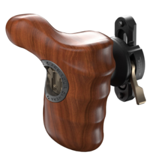 Questa impugnatura in legno presenta un design ergonomico per offrire il massimo comfort durante l'utilizzo di una fotocamera di qualsiasi dimensione. Può essere fissata alla gabbia della fotocamera tramite supporti laterali opzionali: Type VIII (NATO), Type X (Rosette ARRI) o Type XI (1/4"-20 con perni di posizionamento). Un pulsante di sblocco sul lato del supporto consente di regolare facilmente l'angolo dell'impugnatura per trovare la posizione operativa perfetta e di riposizionarla rapidamente durante la regolazione per diverse riprese.