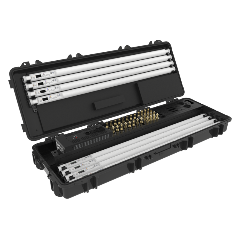 Borsa contenente 8 x tubi Titan, 1 x alimentatore, 8 x supporti, 16 x raccordi, 16 x anelli di serraggio, 16 x supporti + clip