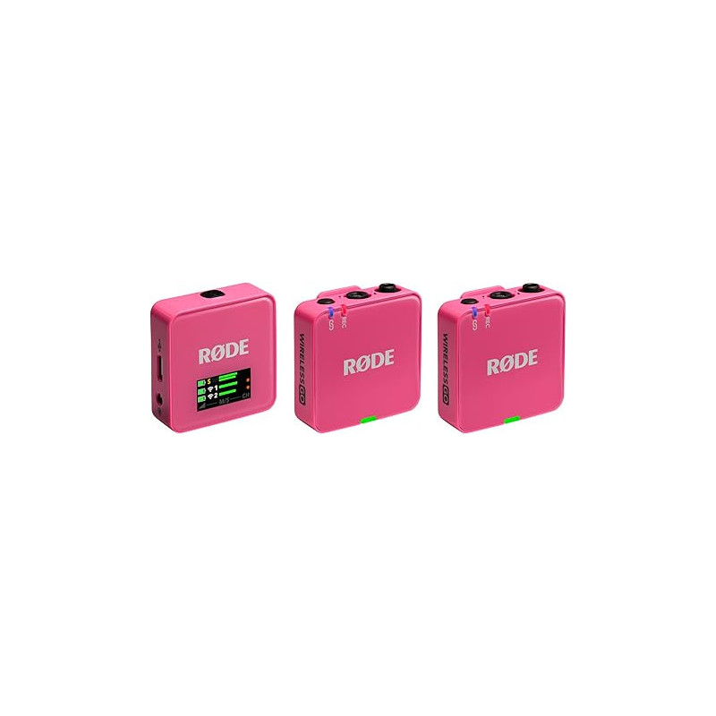 With more powerful features that are easier to use than ever before, the pink RODE Wireless GO (Gen 3) system lets videographers, vloggers, and mobile journalists quickly and confidently record two on-camera personalities to a mobile device or camera and get professional sounding, broadcast-ready results.